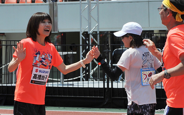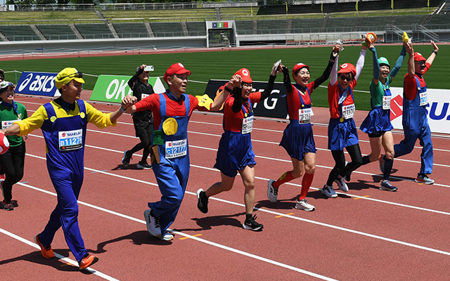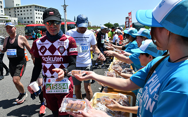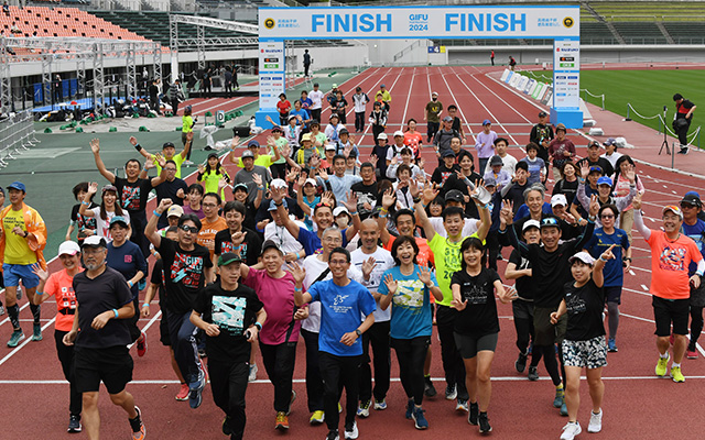 前回大好評のエイドでは岐阜の名物である鮎菓子や鶏ちゃんなど、地元グルメが勢ぞろい。地元小中学生が作成する応援ゼッケンや沿道の温かい応援もランナーの背中を押してくれます。そしてフィニッシュ地点では名物となった高橋尚子大会長や野口みずきさんほかゲストとのハイタッチ。ランナーの皆さんを岐阜らしさ満載で盛り上げます。